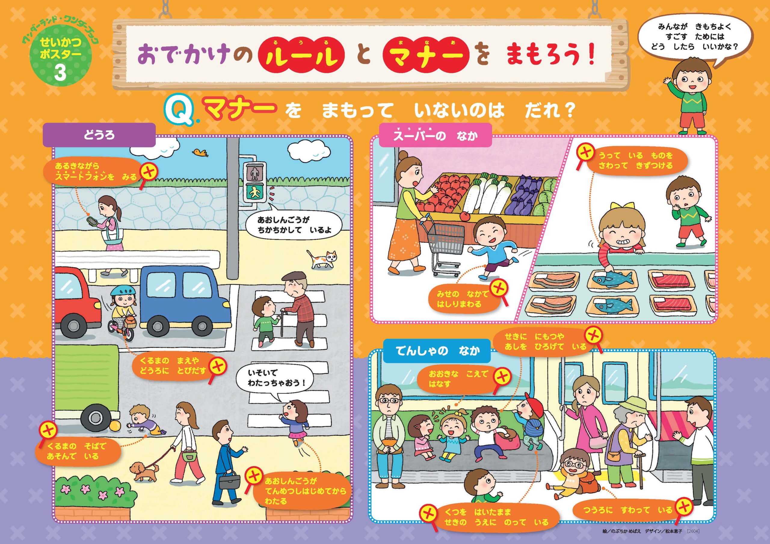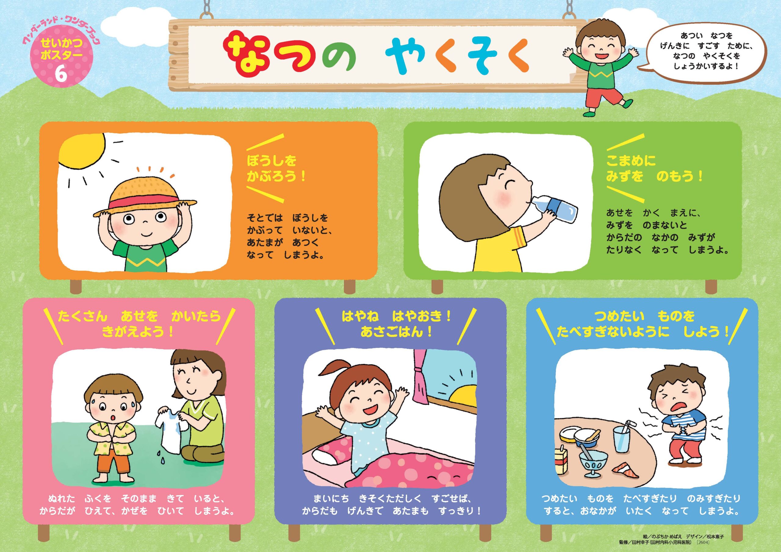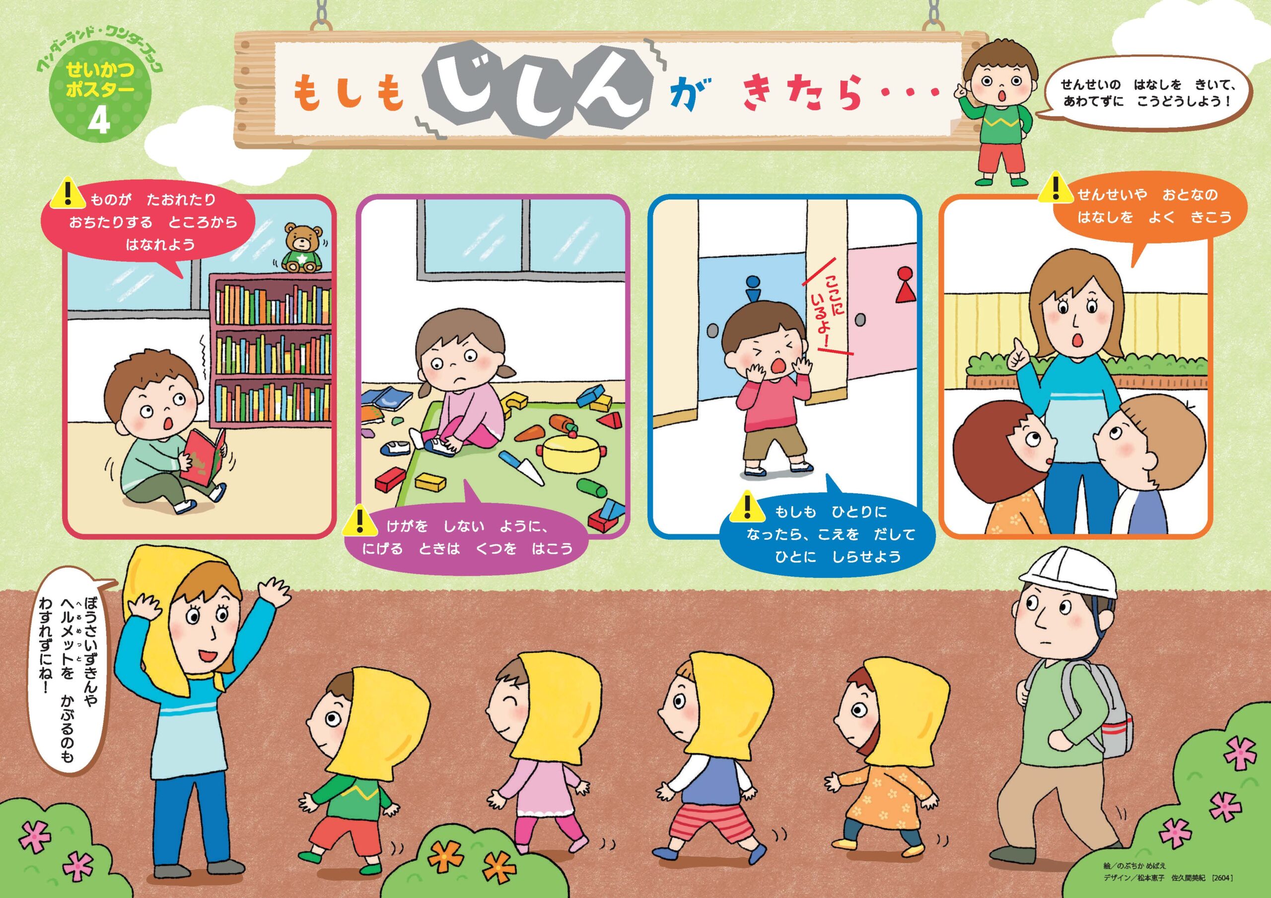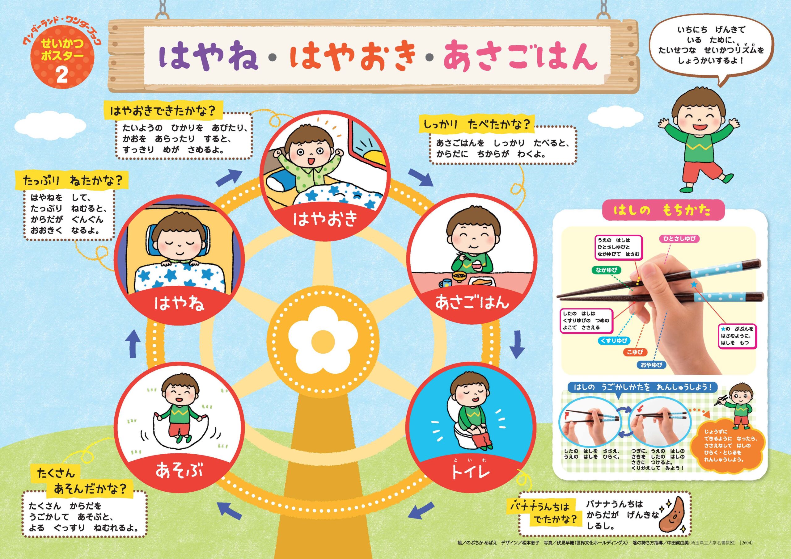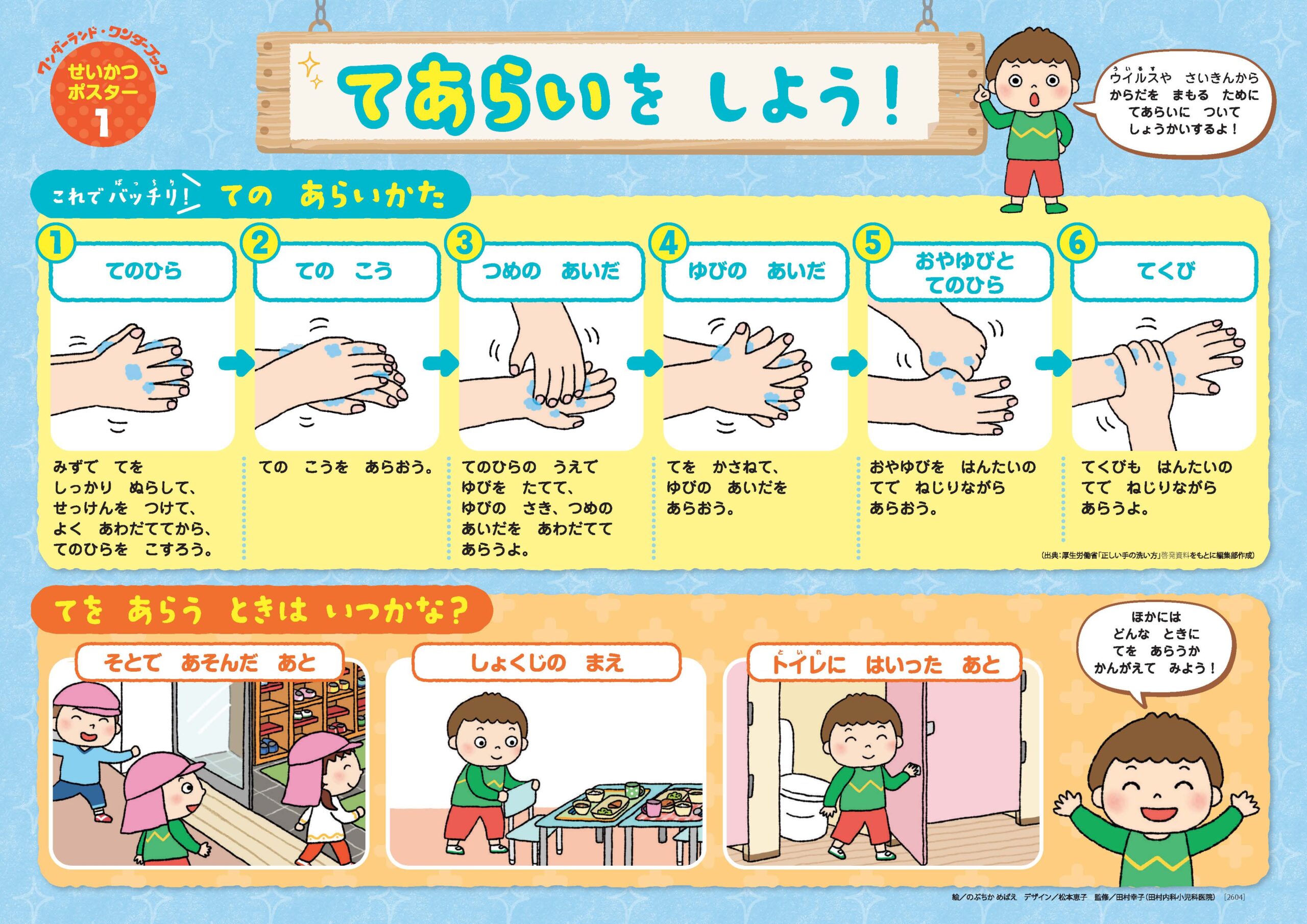 2026年度ワンダーランド・ワンダーブック共通付録 せいかつポスター2025.11.04 手洗いをしよう! 監修/田村幸子(田村内科小児科医院) PDFダウンロード 早寝・早起き・朝ごはん(+箸の持ち方) 監修/中田眞由美(埼玉県立大学名誉教授) PDFダウンロード おでかけのルールとマナーを守ろう! PDFダウンロード もしも地震がきたら… PDFダウンロード 歯をみがこう! 監修/松山歯科 PDFダウンロード 夏の約束 監修/田村幸子(田村内科小児科医院) PDFダウンロード 子どもたち自身が今必要な生活習慣を理解し、実践できるように生活ポスターを作成しました。 無償公開となっておりますので、ぜひ、園やご家庭でご活用ください。A4~A3サイズで印刷してお使いいただけます。 お知らせカテゴリー 月刊絵本編集部だより 関連キーワード 感染症