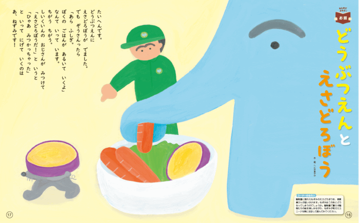 P.26の飼育員のおじさんとねずみとの会話は、雰囲気を変えてそれぞれの気持ちが伝わるようにゆっくりと読んで、やさしい気持ちや幸せな気持ちを伝えていきましょう。