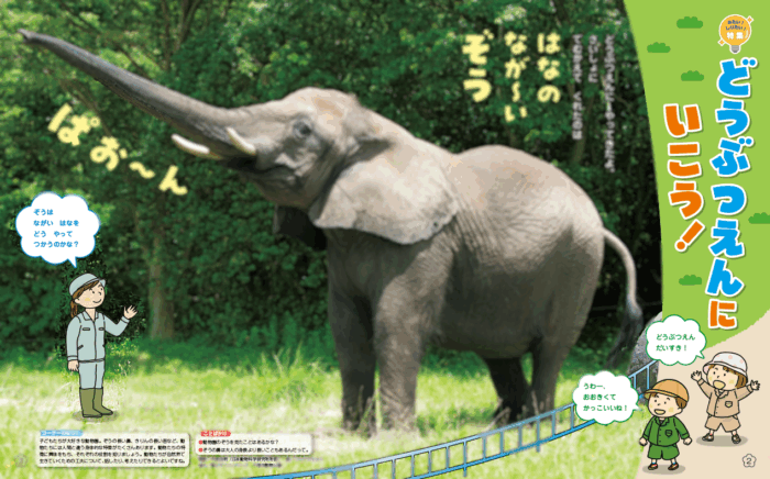 ●「ゾウは長い鼻をどうやって使うのかな?」