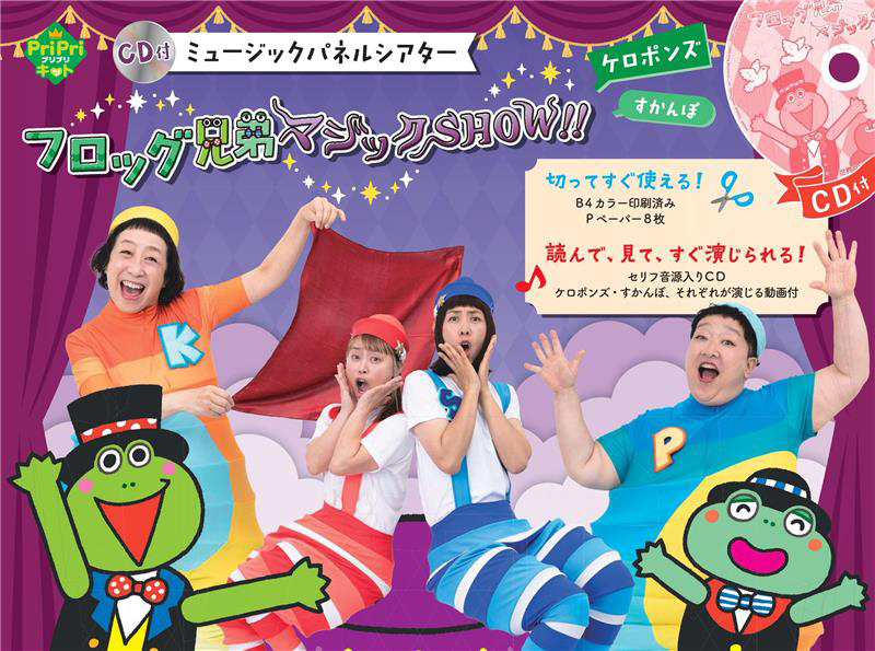 カエルの兄弟のケロとクワがマジックSHOWをするよ。「3・2・1、フローッグ!」の言葉に合わせてびっくりするようなことが! どんなマジックを見せてくれるかな? カラー印刷済みPペーパー8枚(B4サイズ)と、解説書(楽譜付)、CDのパネルシアターセットです。セリフ入りのCD音源だから、練習も簡単! 楽しみながら、練習できます。