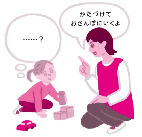発達障害? 言語? 原因の判断が難しい 日本語での会話も指示の理解も困難な子どもの保護者 入園から数か月経つ3歳児が、意味のある日本語を話さず、こちらの指示も理解していないようです。言語の問題なのか、発達面が原因なのかの判断が難しく、保護者が子どもの様子に気がついているかもわかりません。保護者に伝えた方がよいでしょうか。 |