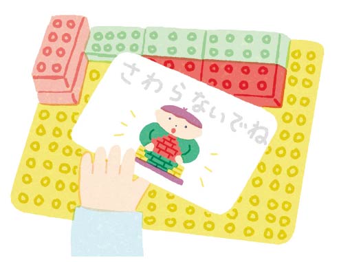 【園での様子】 あそびに集中しすぎて片づけの時間になってもひとりだけやめず、保育者に注意されることが多い。しかしなぜ注意されたかよくわかっていない様子で、泣き出すことも。 【支援のポイント】 本人に悪気はなく、片づける時間だと気づいていない可能性も。こまめな声かけで情報を取り入れやすくしたり、またできることを伝えたりして、本人が〝終わり〟に納得できると、次に移れます。 |
