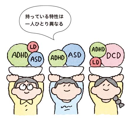 ![]() 生まれつきの脳機能の偏りが関係する 誰しもがもつ得意・不得意には個人差があり、それは脳機能の働きに由来します。発達障害とは、その脳機能の偏りが大きいために日常生活に困難が生じており、支援が必要な状態のこと。本人の様子や困りごとの程度などをもとに診断がつきます。診断は医師が行います。 ![]() 一人ひとりの視点に立った支援が必要 子どもは十人十色です。一人ひとり持っている特性が違えば、その強弱や現れ方も異なり、さらには複数の特性をあわせ持つ場合が多いともいわれています。そのため、それぞれの視点に立ったオーダーメイドの支援が求められます。これは、合理的配慮の観点からも大切なことです。 ![]() 気になる子=発達障害と決めつけない 気になる行動をとる子に対して、保育者が安易に発達障害だと決めつけたり、憶測で診断名を口にしたりすることは避けましょう。発達障害かどうかに関係なく、大切なのは、目の前にいるその子に合った関わり方を考えていくこと。苦手なことはサポートし、楽しく過ごせるようにすることです。 |